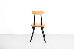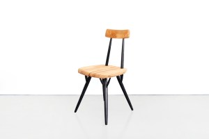 Omschrijving: Te gekke Pirkka stoel van Ilmari Tapiovaara uit Finland. Top Scandinavisch design en een echte design Icon. De stoel is gemaakt van zwart gelakt en naturel geolied pine hout. Een bijzondere eye-catcher voor in elk interieur. De stoel heeft een hoogte van 75 cm, hij is 37 cm breed en een zithoogte van 43 cm.