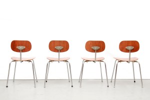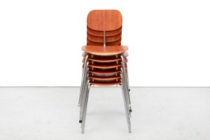 Omschrijving: Mooie set van 6 industriële eetkamerstoelen in teak met een mooi vormgegeven metalen frame. Het ontwerp lijkt erg op de stoelen van Egon Eierman. Deze stoelen zijn stapelbaar en komen uit een Deense brandweerkazerne. Ze zijn een beetje geleefd maar persoonlijk vinden wij dit erg mooi aan deze stoelen. Ze zijn degelijk en stevig en klaar voor een volgende ronde.