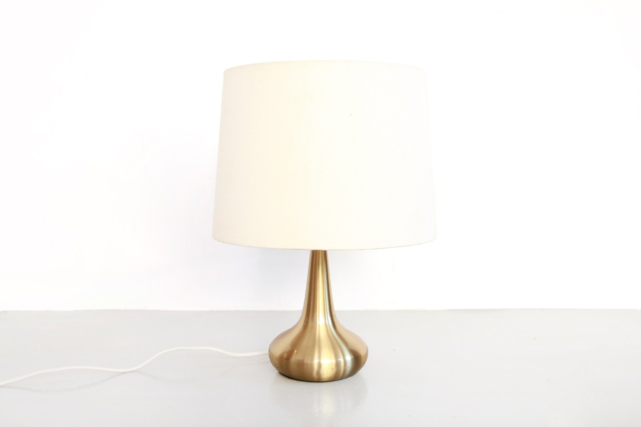 Omschrijving: Prachtige messing tafellamp ontworpen door Jo Hammerborg voor Fog & Mørup. Deze tafellamp is ontworpen in de jaren 60 en is gemaakt van messing. Deze lamp met modelnaam “Orient” heeft een messing lampenvoet en een witte kap. Zowel aan als uit trekt deze lamp veel aandacht. Een mooie lamp die goed zal staan in elk interieur.