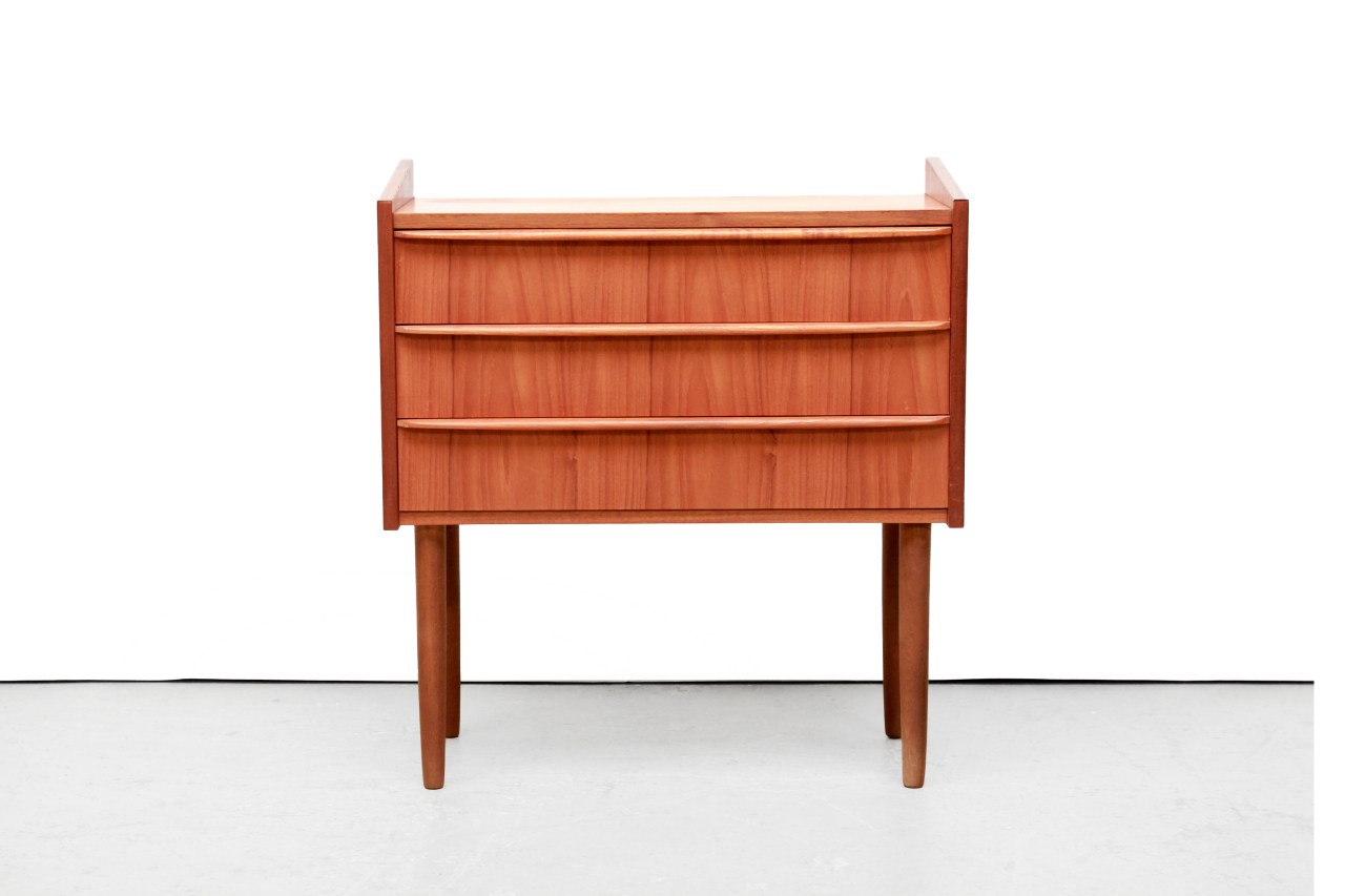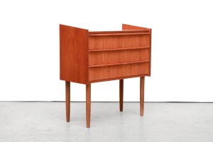 Omschrijving: Prachtige Deens design ladenkast met 3 lades. Uitgevoerd in teak fineer en massief teak houten greepjes die over de gehele breedte van de lade lopen. Het kastje is goed te gebruiken als bijvoorbeeld een nachtkastje, een gangkastje of als extra opbergruimte in de woonkamer.