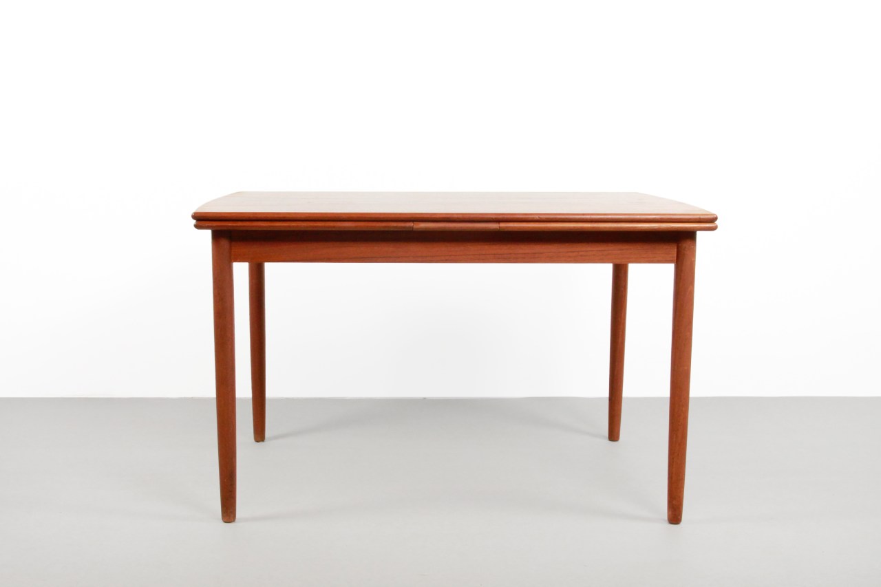 Omschrijving: Vintage Deense uitschuifbare eetkamertafel uitgevoerd in teakhout.