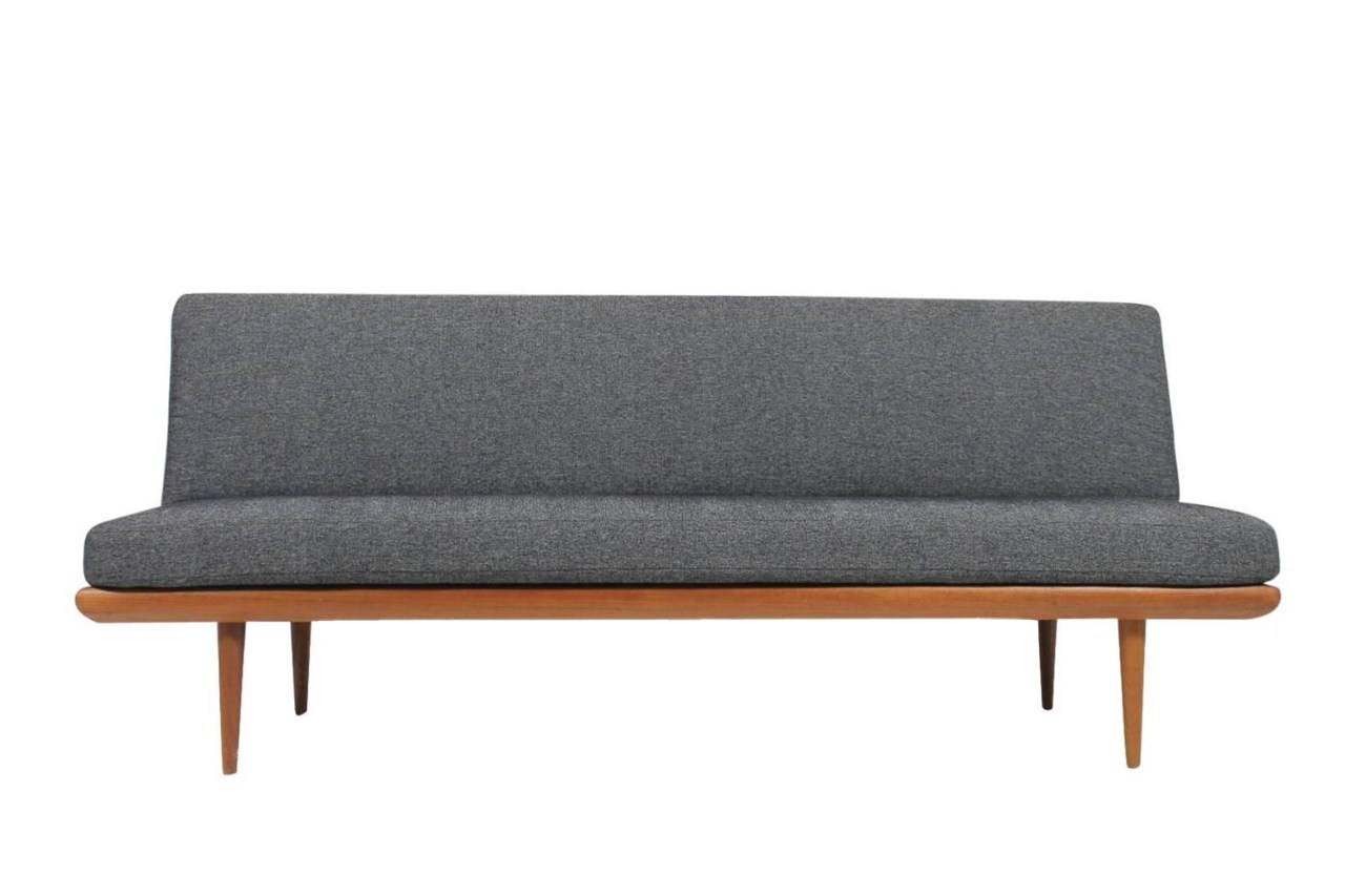 Omschrijving: Prachtige driezits sofa ontworpen door het Deense duo Peter Hvidt en Orla Mølgaard Nielsen en geproduceerd door de beroemde Deense producent France and Daverkosen. De sofa, genaamd Minerva, is uitgevoerd in massief teak hout. De sofa is 190 cm breed, 78 cm hoog en heeft een zithoogte van 41,5 cm. De totale diepte is 76,5 cm.