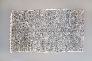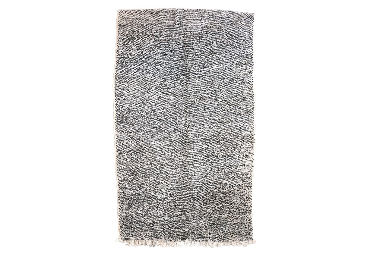 Omschrijving: Prachtig Berber tapijt uit Marokko. Dit tapijt is een echt oude Beni Ouarain handgeknoopt van ongeverfd natuurlijk wol. De Beni Ouarain kleden worden gekarakteriseerd door een simpel motief, in dit geval: zwarte en witte stippen. De Beni Ouarain zie je de laatste tijd vaker in het interieur verschijnen, en dat is niet gek: dit type kleed voelt zeer warm, zacht en comfortabel aan. Veel tapijten die je nu ziet zijn nieuw en soms vaak machinaal gemaakt. De oude tapijten herken je aan de 100% pure wol op wol en de afmeting. De echte vintage Beni Ourains zal je niet breder vinden dan 220 cm. Dit tapijt is 125 x 220 cm en ondanks dat het een zeer oud tapijt is, een prachtige tijdloze toevoeging aan uw interieur.
