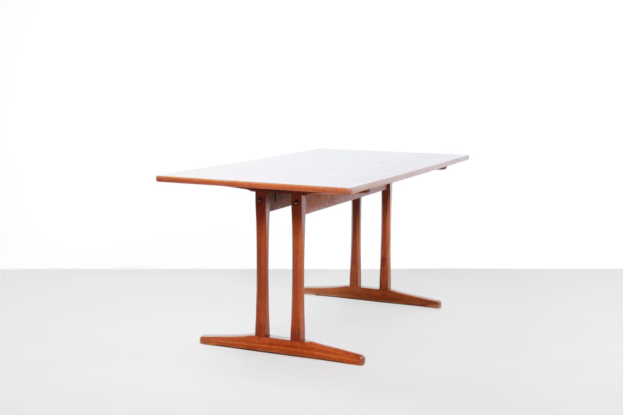 Omschrijving: Mooie eikenhouten eetkamertafel ontworpen door Borge Mogensen en geproduceerd door FDB Mobler in de jaren 60. De tafel is gemaakt van eiken en is in de loop der tijd mooi donker van kleur geworden. Bijna als teak. De tafel is 160 cm lang, 82 cm diep en 73 cm hoog.