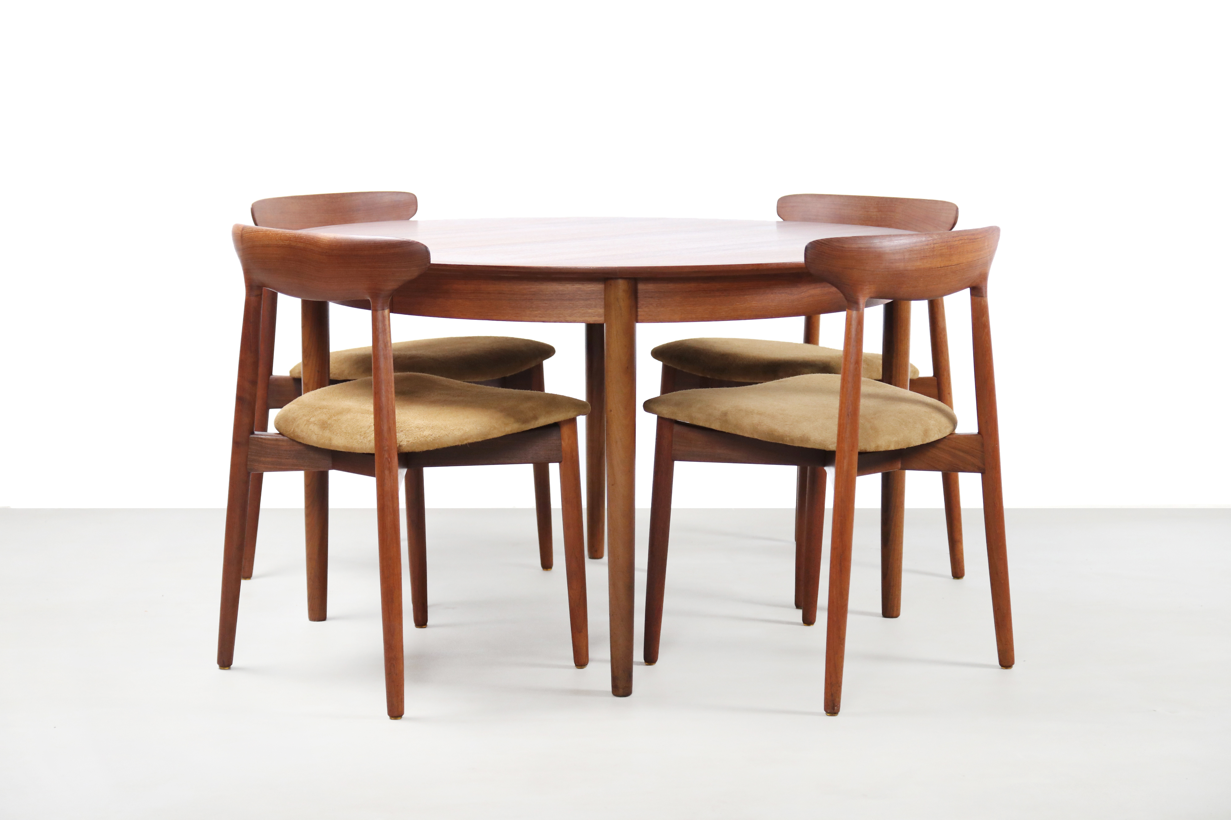 Set of five Harry Ostergaard model 59 design dining room chairs in teak with leather with round table Gepubliceerd 10 december 2019 at 3984 × 2656 in Set van vijf Harry Ostergaard model 59 design eetkamerstoelen in teak met leer ← Vorige