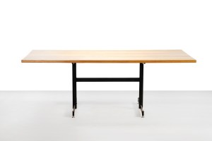 Omschrijving: Stijlvolle vintage design eetkamertafel met prachtig massief eiken houten blad en een metalen onderstel. De fabrikant van deze tafel is de Nederlandse Artimeta. Absoluut een prachtig exemplaar, en een zeer goede combinatie met de eiken houten Yngvar Sandstrom stoelen die wij ook te koop aanbieden. De tafel is 73 cm hoog en heeft een lengte van 200 cm en een breedte van 100 cm.