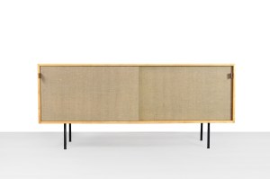 Omschrijving: Prachtig sideboard van Florence Knoll voor Knoll international. Het dressoir is gemaakt van berken hout en met seagrass beklede schuifdeuren. De greepjes zijn van leer. Dit iconische dressoir is een erg mooi voorbeeld van het modernisme uit de Verenigde Staten uit de jaren 50.