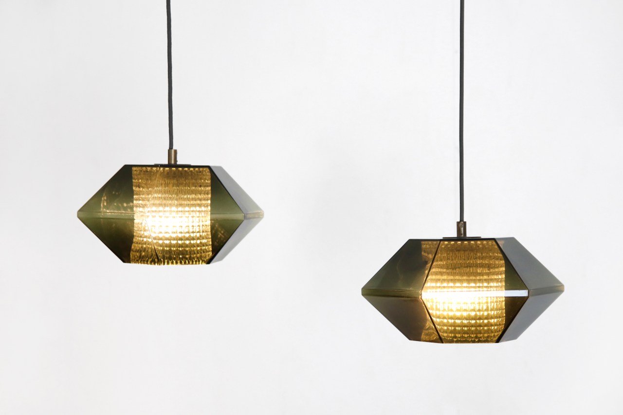 Omschrijving: Bijzondere set lampen van Carl Fagerlund voor Orrefors uit Zweden. De lampen hebben een prachtige zeshoekige vorm van prachtig donker groen glas, met daarbinnen een cilindrische kristalglazen diffuser. De lampen hebben messing details. Kortom prachtige en zeldzame set lampen die een mooi plekje verdienen. De lampen zijn 14 cm hoog en hebben een diameter van 30 cm.