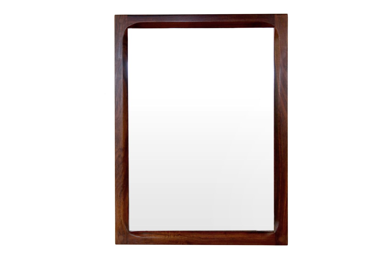 Omschrijving: Erg mooie palissander spiegel ontworpen door Kai Kristiansen en geproduceerd door Aksel Kjersgaard in Odder Denemarken. Vaak wordt ten onrechte gedacht dat Aksel Kjersgaard de ontwerper van deze spiegels is, maar Aksel Kjersgaard was de producent die onder andere een aantal ontwerpen van Kai Kristiansen in productie heeft genomen. Deze spiegel is erg mooi en ambachtelijk gemaakt, kijk bijvoorbeeld naar de prachtige deuvel verbinding in de hoeken. De spiegel heeft een afmeting van 60 bij 44 cm.