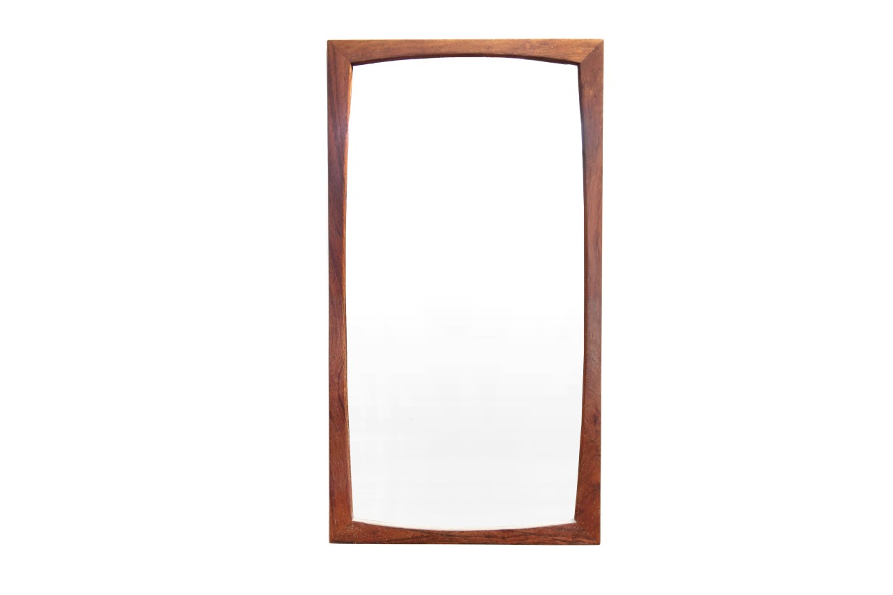 Omschrijving: Erg mooie teakhouten spiegel ontworpen door Kai Kristiansen en geproduceerd door Aksel Kjersgaard in Odder Denemarken. Vaak wordt ten onrechte gedacht dat Aksel Kjersgaard de ontwerper van deze spiegels is, maar Aksel Kjersgaard is voornamelijk producent die onder andere een aantal ontwerpen van Kai Kristiansen in productie heeft genomen. De spiegel heeft een afmeting van 80 bij 42 cm.
