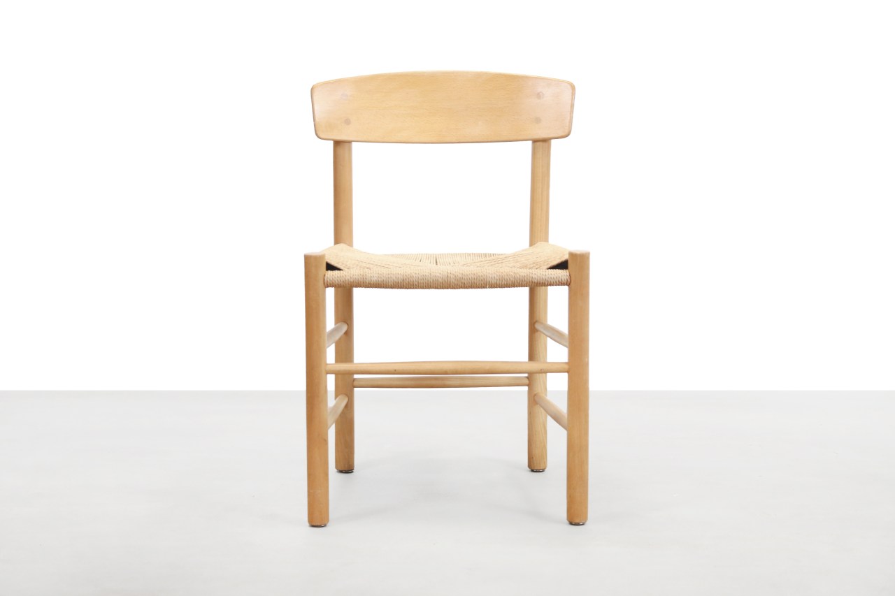 Omschrijving: Iconische eetkamer stoel ontworpen door Børge Mogensen in 1947. Dit exemplaar is gemaakt van beukenhout en komt uit de jaren 60. De papercord zitting is origineel. De Peoples chair, zoals deze genoemd wordt, heeft eigenlijk model naam J39. Mogensen ontwierp zijn meubels met de gedachten dat ze de tand des tijds moesten doorstaan. Zo ook bij dit geweldige ontwerp, die na meer dan 50 jaar er nog bijna als nieuw uit ziet. Deze stoel kan bijvoorbeeld erg goed gecombineerd worden met het Eeka bureau welke wij op dit moment te koop aanbieden.
