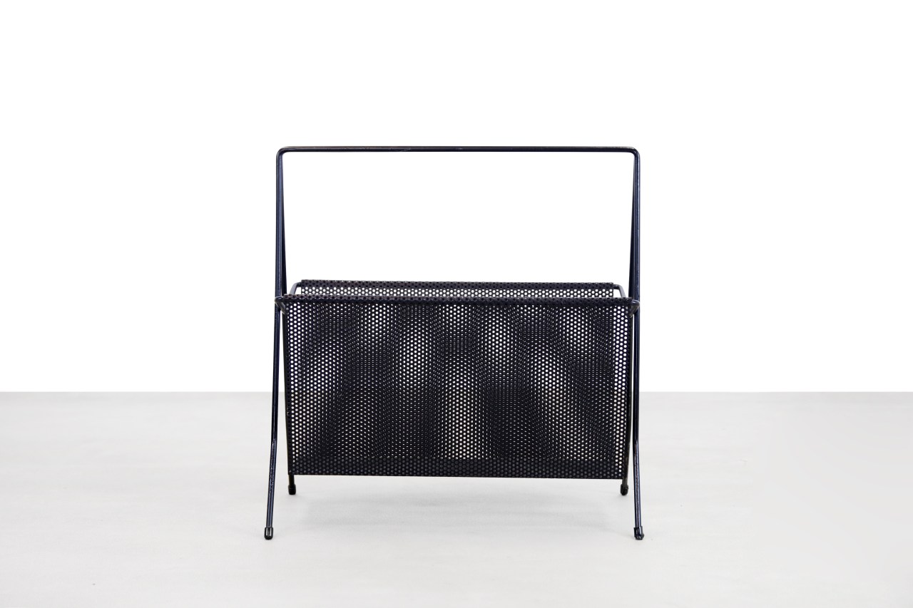 Omschrijving: Leuke zwarte vintage lectuurbak van Pilastro. Gemaakt van zwart gelakt geperforeerd staal op slanke zwart gelakte metalen pootjes. Leuk voor naast de bank of een fauteuil met je favoriete tijdschriften, boeken of zet hem bijvoorbeeld bij de platenspeler voor je LP’s.