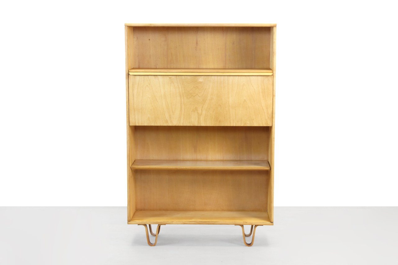 Omschrijving: Zeer mooie secretaire van Cees Braakman uit de bekende Berkenserie van Pastoe. De gebogen berkenhouten poten zijn kenmerkend voor deze serie. Deze prachtige kast kan gebruikt worden om in op te bergen, maar door de klep met het handige opbergvak is deze kast ook zeer goed te gebruiken als bureau. Aan de nieuwe werkplek die de klep heeft gecreëerd, kan namelijk makkelijk gewerkt worden met een laptop. Zeer handig voor mensen die klein behuisd zijn. De kast is: 134 cm hoog, 88 cm breed en 30cm diep