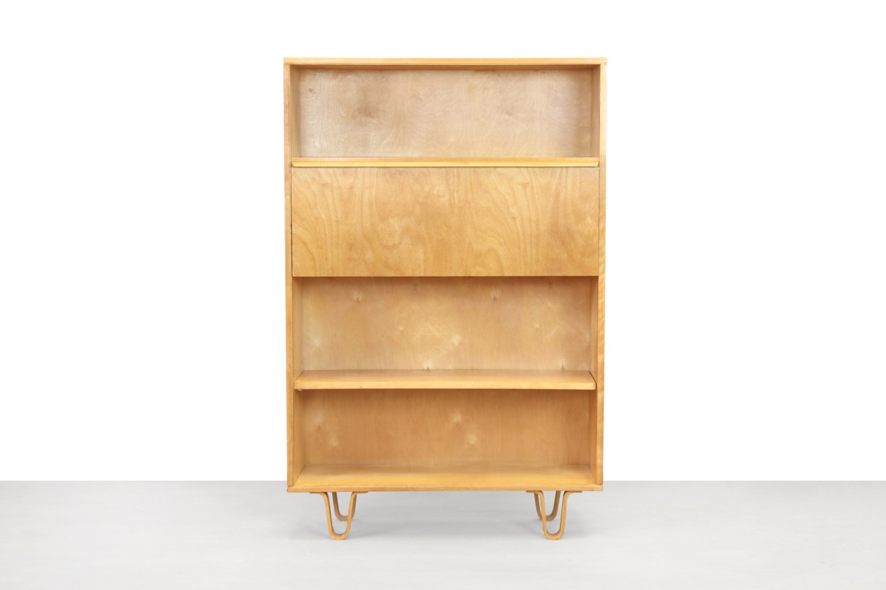 Omschrijving: Zeer mooie secretaire van Cees Braakman uit de bekende Berkenserie van Pastoe. De gebogen berkenhouten poten zijn kenmerkend voor deze serie. Deze prachtige kast kan gebruikt worden om in op te bergen, maar door de klep met het handige opbergvak is deze kast ook zeer goed te gebruiken als bureau. Aan de nieuwe werkplek die de klep heeft gecreëerd, kan namelijk makkelijk gewerkt worden met een laptop. Zeer handig voor mensen die klein behuisd zijn. De kast is: 134 cm hoog, 88 cm breed en 30cm diep