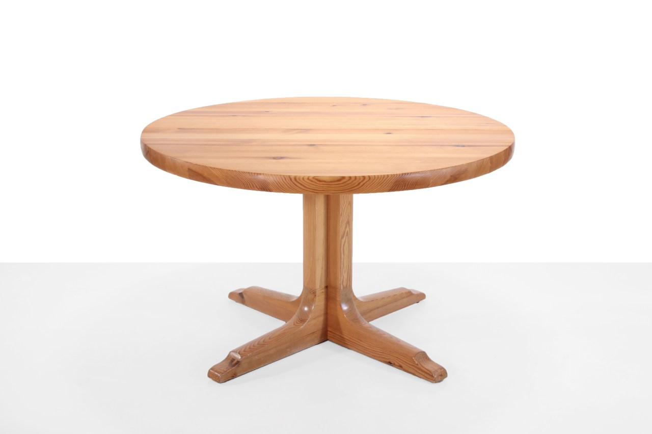 Omschrijving: Mooie grenen houten eetkamertafel van NC mobler uit Zweden. Deze zware ronde massief grenen houten tafel is uitschuifbaar en te verlengen met twee extra bladen tot een grote ovale tafel die de ruimte biedt voor 8 of zelfs 10 eetkamerstoelen.