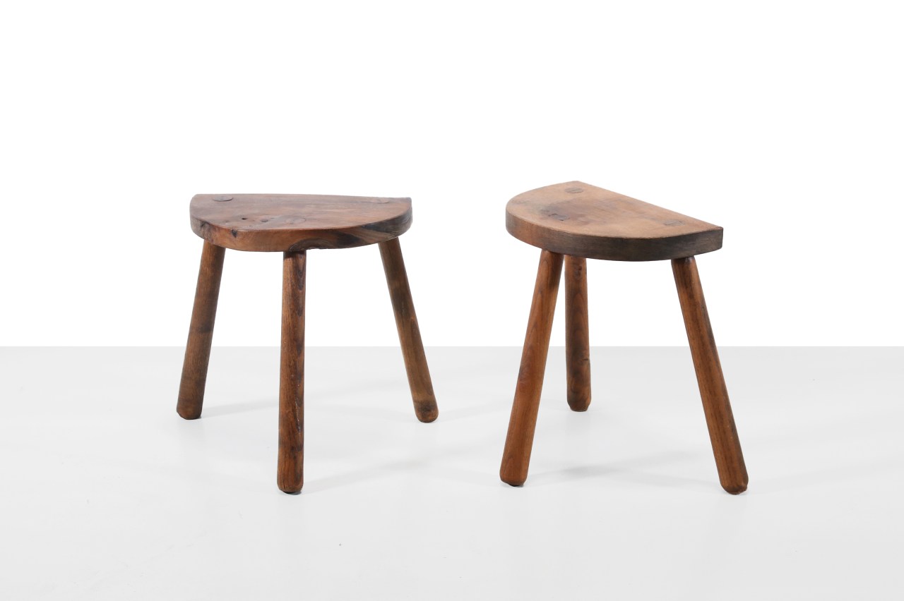 Omschrijving: Twee oude melkkrukjes uit Frankrijk. De krukjes zijn goed te gebruiken als bijzettafeltjes of nachtkastjes en geven erg veel sfeer in elke modern interieur. Een mooi detail van ambacht is de manier waarop de pootjes aan het bovenblad zijn vastgemaakt.