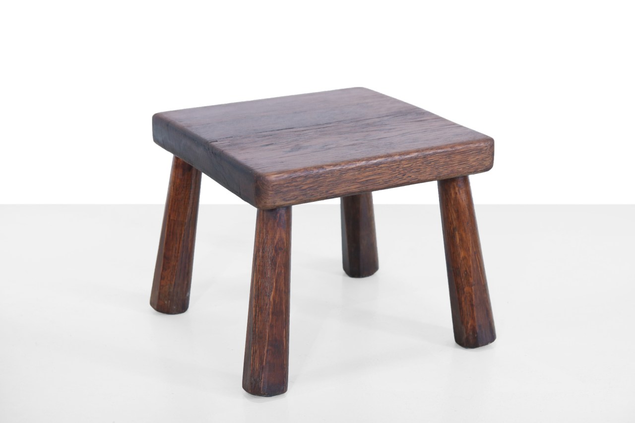 Omschrijving: Leuk mid century houten krukje uit de jaren 50. Gemaakt van massief eiken hout en is perfect te gebruiken als bijzettafeltje of plantentafeltje. Het tafeltje is 27 cm hoog en 32 bij 32 cm.