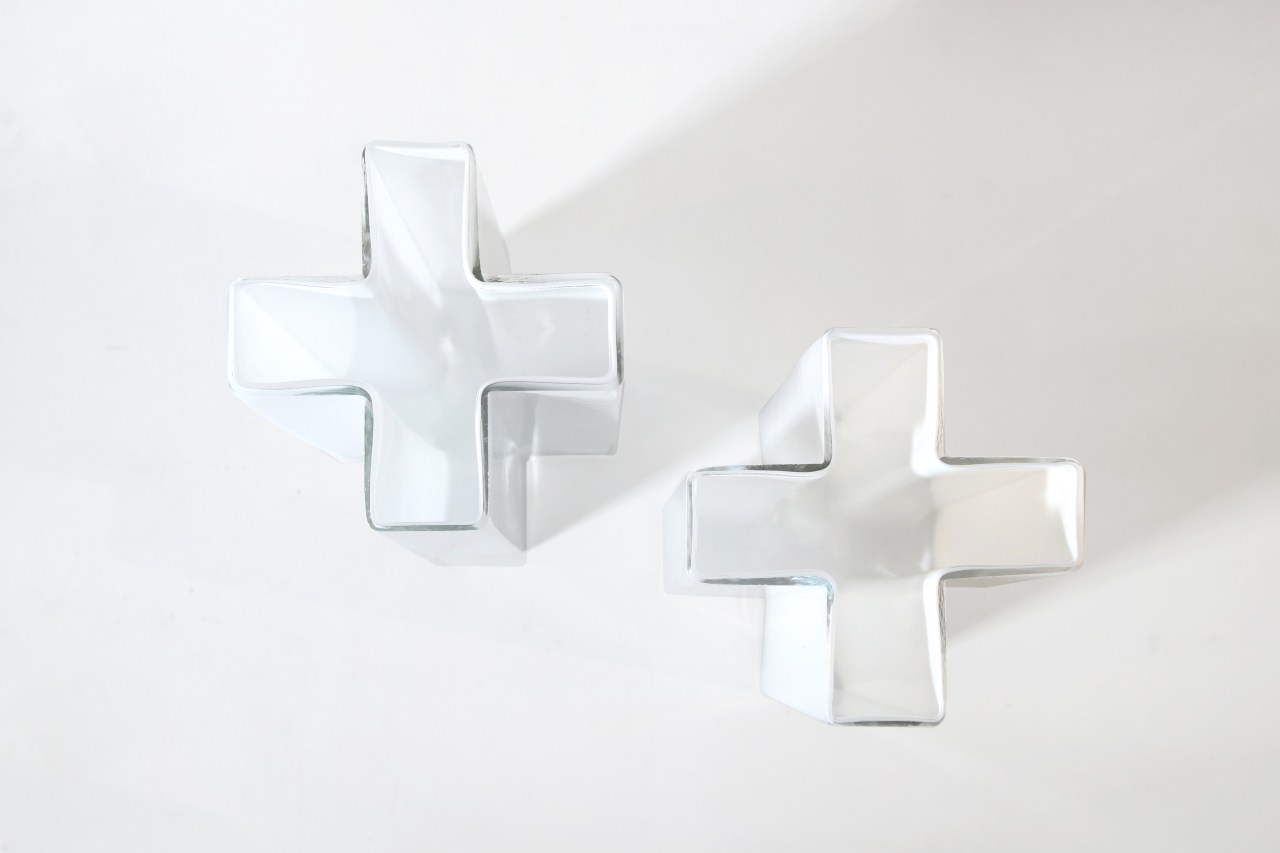 Omschrijving: Erg mooie witte vaas van Bodil Kjaer voor Gullaskruf, Sweden. De vaas is in de vorm van een plus of een kruis en is gemaakt van wit glas. Bodil Kjaer ontwierp deze vaas in 1961 en is vooral mooi in een collectie. Bij voorkeur verkopen we de vazen dan ook als paar. Deze vazen zijn het grote model van 22,5 cm hoog met een lengte en een breedte van 15 cm.