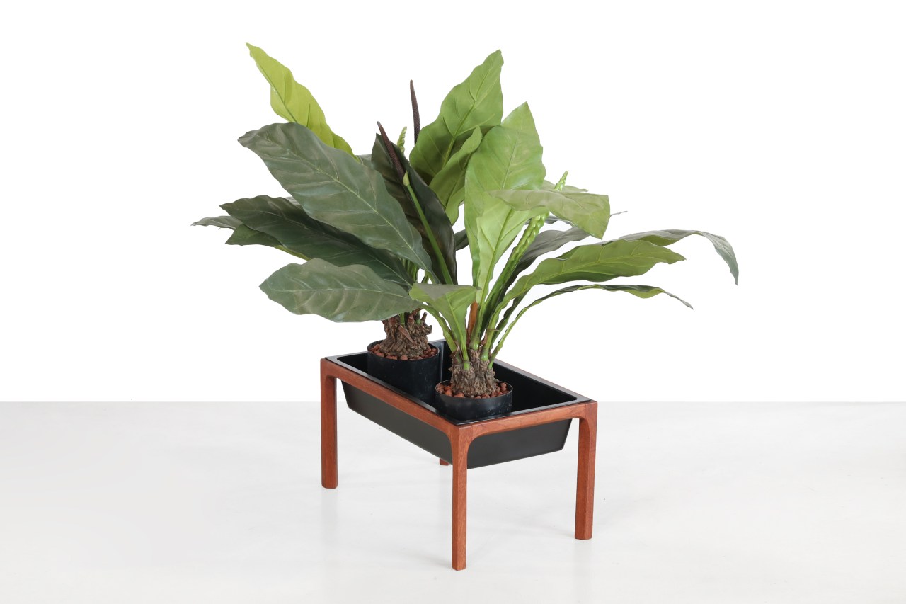 Omschrijving: Prachtige Mid century modern plantenbak van warm teak hout. Deze planter is ontworpen door Kai Kristiansen en geproduceerd door Aksel Kjersgaard uit Odder, Denemarken in de jaren 50. De prachtige houtverbindingen zijn kenmerkend voor de ontwerpen van Aksel Kjersgaard. Dit zie je bijvoorbeeld ook in de spiegels en gangmeubels terug van deze fabrikant. Vul deze plantenhouder met verschillende planten, cactussen of vetplanten die bij jouw inrichting passen. De planter is voorzien van een plastic bak welke elegant verzonken is in het teakhouten frame. Met een stel hoge planten, kan deze planten tafel ook zeer geschikt zijn als room divider. Deze klassieker is mooi van eenvoud en tijdloos door zijn minimalistische vormgeving. Een mooie combinatie van Deens vakmanschap en de perfecte woon accessoire om meer groen in huis te halen. De afmetingen van dit meubelstuk zijn 60 cm breed, 33 cm hoog en 37 cm diep.