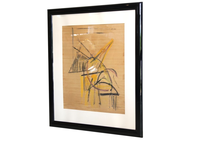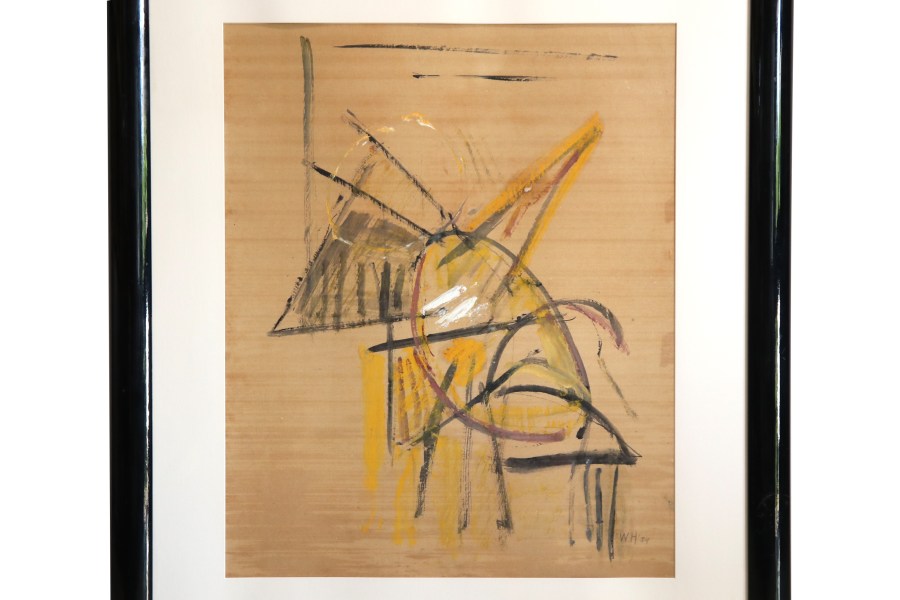 Omschrijving: Modernist abstract Aquarel en Gouache op papier 63 x 51 cm. Gesigneerd rechtsonder met initialen en gedateerd ’54. Inclusief lijst 93 x 89 cm. Geveild door Christies. Hussem woonde van 1918 tot 1936 in Parijs, waar hij onder anderen Piet Mondriaan en Pablo Picasso leerde kennen. Naast laatstgenoemde heeft ook Vincent van Gogh invloed op zijn stijl uitgeoefend. Na de Tweede Wereldoorlog werden zijn werken abstract.