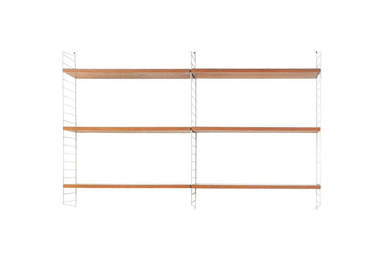 Omschrijving: Mooi String wandrek van Nisse Strinning. Dit veelzijdige wandsysteem is volledig naar eigen smaak in te delen. De planken zijn uitgevoerd in gefineerd pine wood en zijn eenvoudig in en uit de witte metalen staanders te hangen. Zo kun je bij wijze van spreken elke week de indeling veranderen. De planken zijn 80 cm breed en 20 cm diep. Het wandsysteem opgehangen zoals op de foto is 160 cm breed, 102 cm hoog en 20 cm diep.