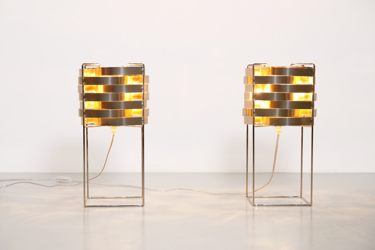 Omschrijving: Twee prachtige eye-catchers als lampjes, deze gebogen messing kunstwerken die ook nog eens licht geven. Het model van dit lampje is Ganymede en is ontworpen in de jaren 60. De zoon van Max Sauze, Sebastien, maakt deze lampen nog steeds en wordt nog steeds met de hand vervaardigd in Frankrijk. De lamp is 33 cm hoog en 16 bij 16 cm.