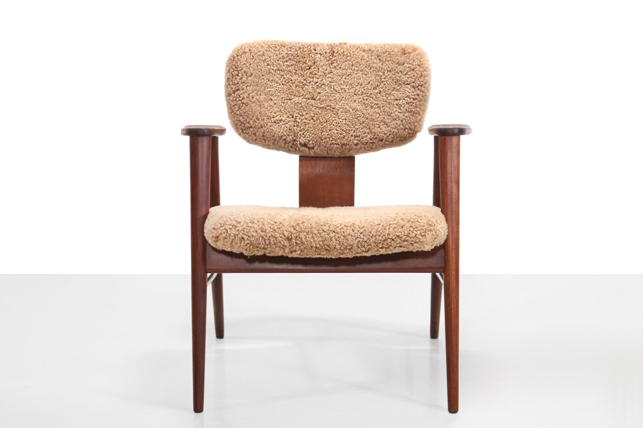 Omschrijving: Erg mooie FT14 lounge chair ontworpen door Cees Braakman voor Pastoe in het eind van de jaren 50. Deze prachtige fauteuil heeft een teakhouten frame en is bekleed met natuurlijke schapenvacht. De totale hoogte van de stoel is 73 cm, hij is 67 cm breed en in totaal 60 cm diep. De zithoogte is 42 cm en de diepte is 48 cm.