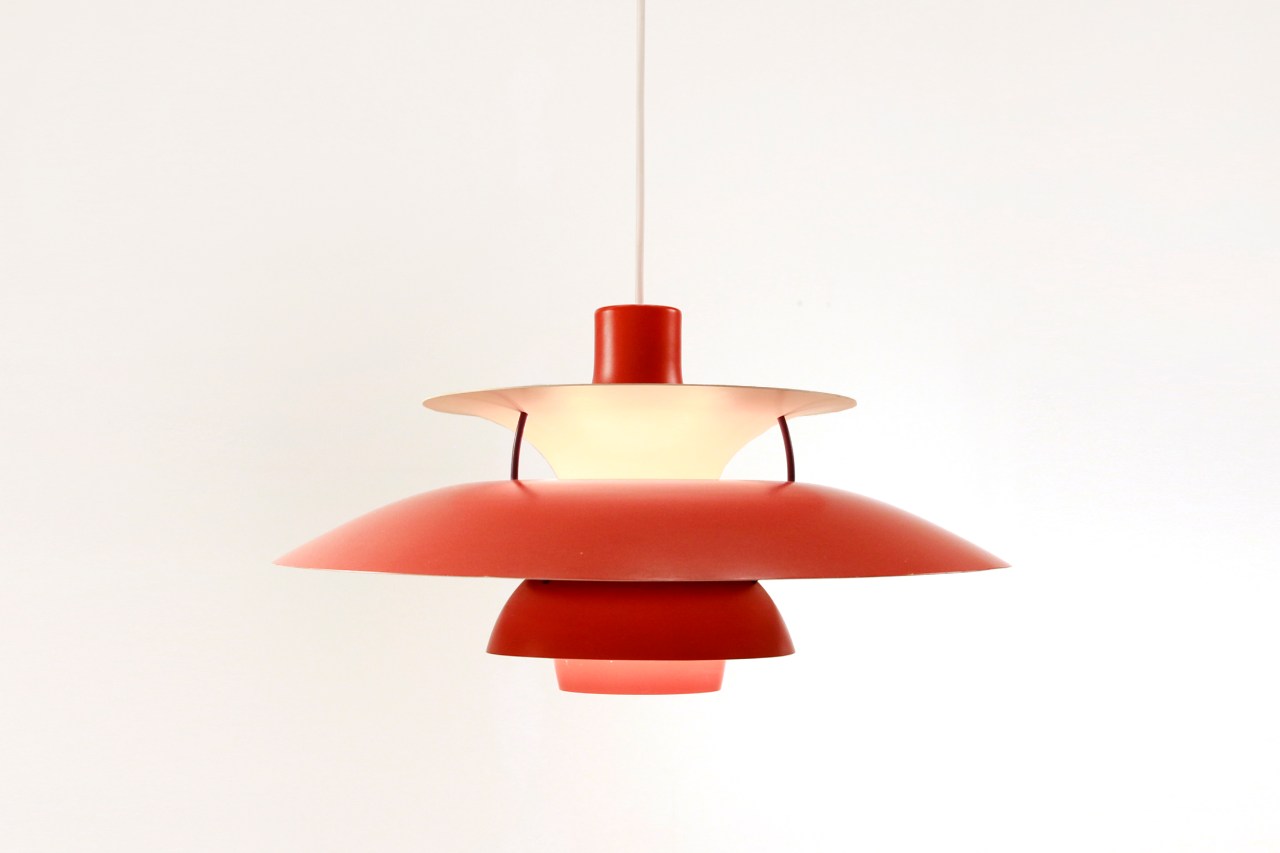 Vintage rode PH5 lamp van Poul Henningen voor Louis Poulsen