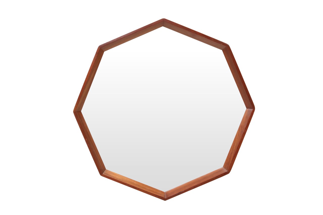 Omschrijving: Mooie Deens design spiegel gemaakt van massief teakhout. Deze spiegel heeft een typische mid century modern vormgeving. Praktische woonaccessoire maar meteen ook een lust om te zien. Hang hem bijvoorbeeld in de gang, of in de slaapkamer. De spiegel is 48,5 cm hoog en 48,5 cm breed.
