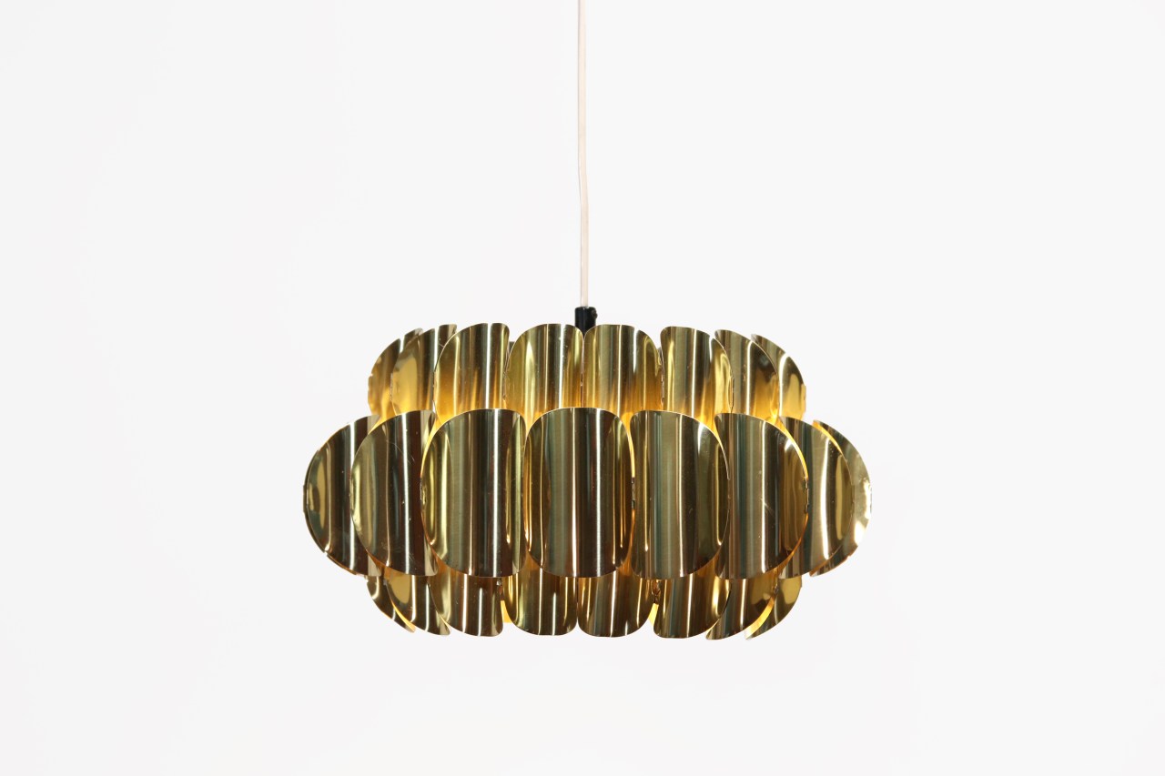 Omschrijving: Bijzonder mooie hanglamp ontworpen door Thorsten Orrling en geproduceerd door Hans-Agne Jakobsson Markaryd AB in de jaren 60. De lamp is gemaakt van massief messing. Zelfs als deze lamp uitstaat is het een prachtige eye-catcher. De lamp heeft een diameter van 36 cm en is ongeveer 20 cm hoog.