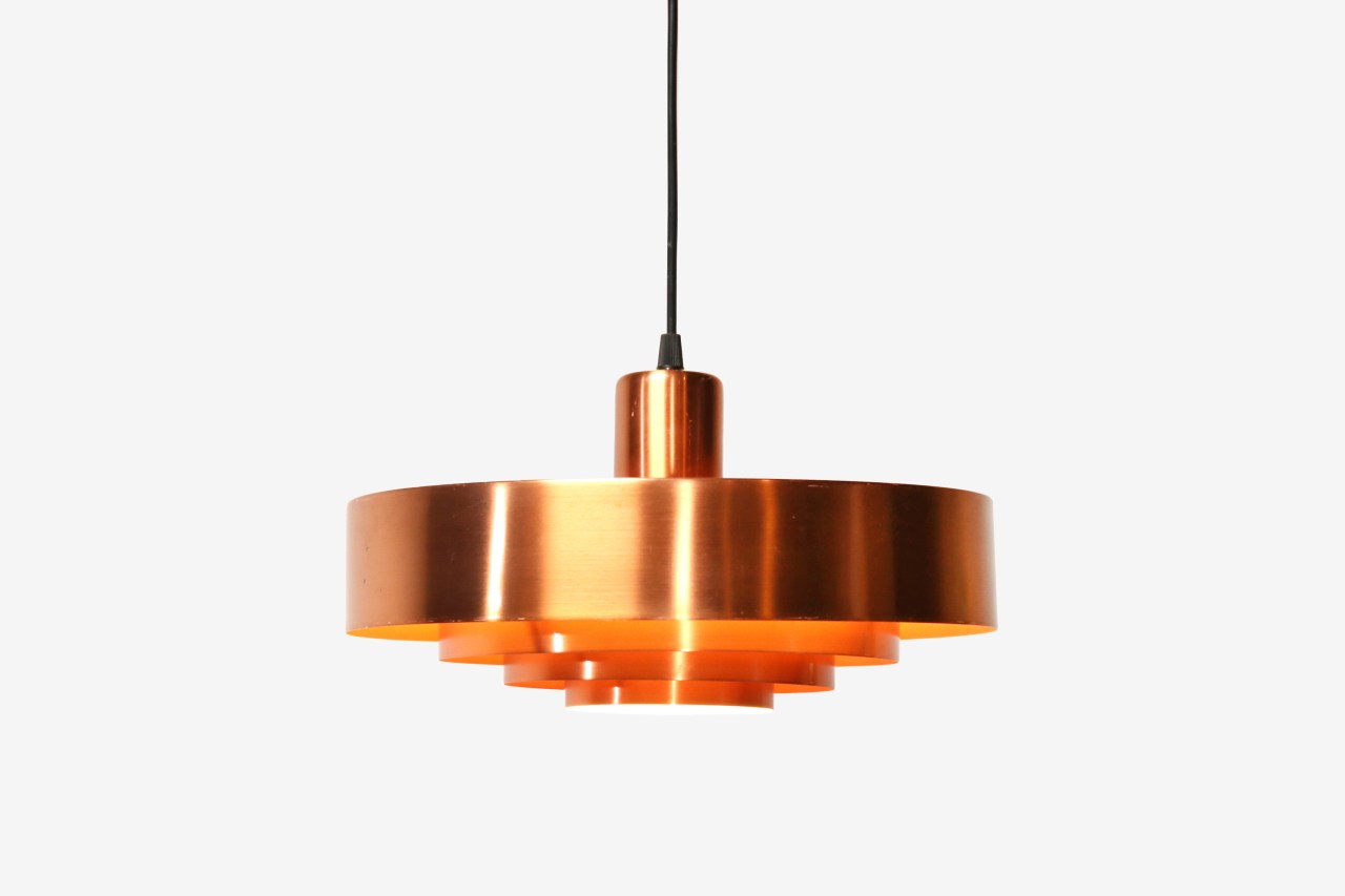 Omschrijving: Prachtige Jo Hammerborg hanglamp met modelnaam Roulet. De lamp is gemaakt van koper en is zelfs als hij uitstaat een prachtige eye-catcher. De lamp is geproduceerd in het begin van de jaren 60 door fabrikant Fog and Morup. In een reclame uit 1963 staat beschreven: