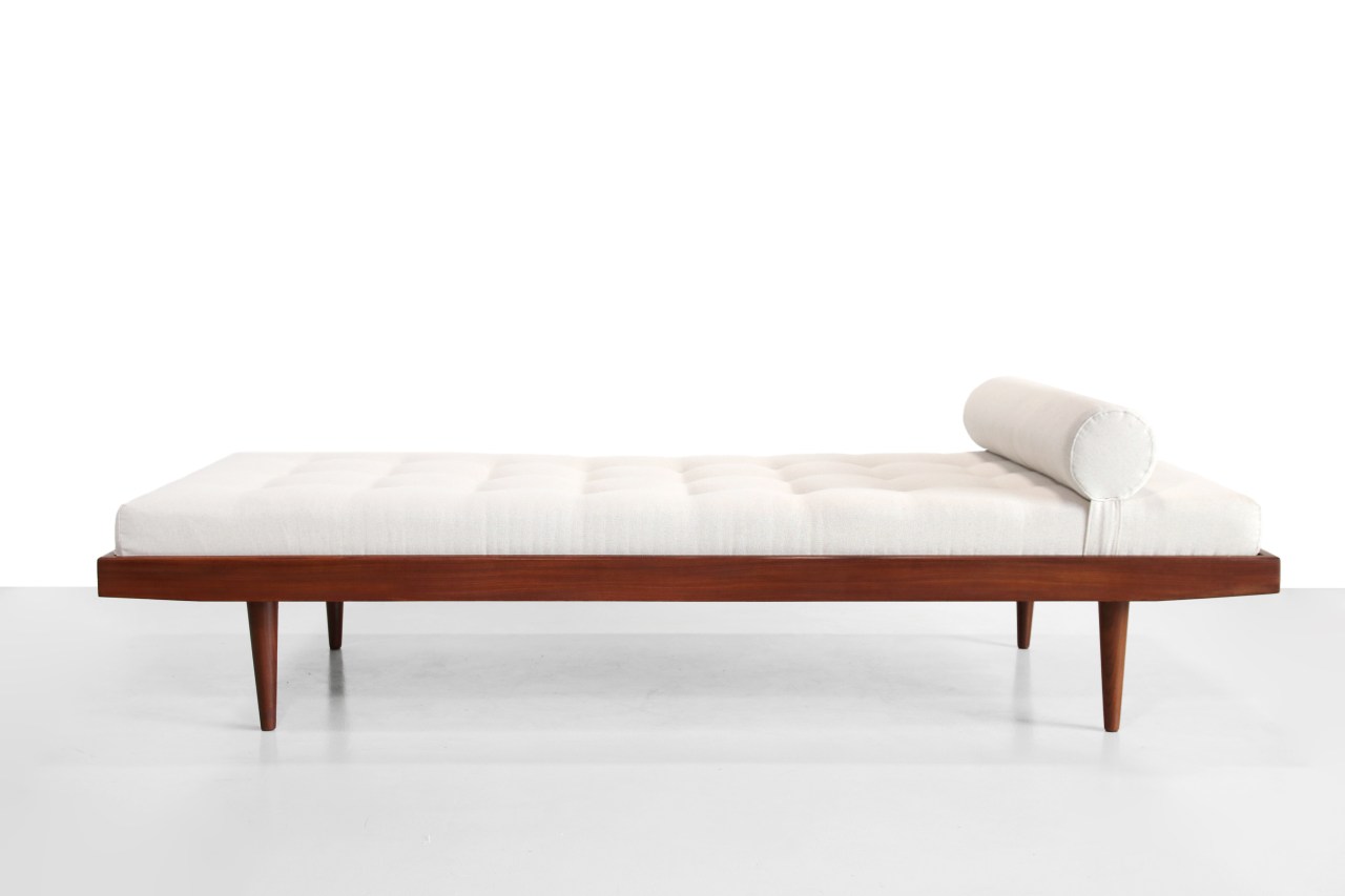 Vintage teak Dutch design daybed Date: 8 april 2023Author: VAN ONS Categorie: SOLD Berichtnavigatie ← Jo Hammerborg Alfa wandlampen door Fog and Morup Keramieken vaas → Aantal: 1Land: NederlandJaar: Jaren 60Artikel nummer: B2647 Omschrijving: Prachtige teakhouten daybed van massief teak met gecapitonneerde zitting en rond kussen in natuurlijk linnen met katoen. VERKOCHT / SOLD Contact