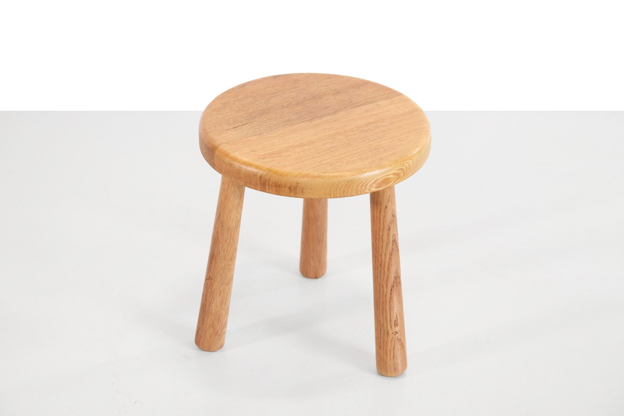 Omschrijving: Leuk mid century houten krukje uit de jaren 50. De stijl van de kruk heeft veel weg van de krukken die ontworpen zijn door Perriand. Gemaakt van massief eiken hout en perfect te gebruiken als bijzettafeltje of plantentafeltje. De kruk is 33 cm hoog en heeft een diameter van 29 cm.
