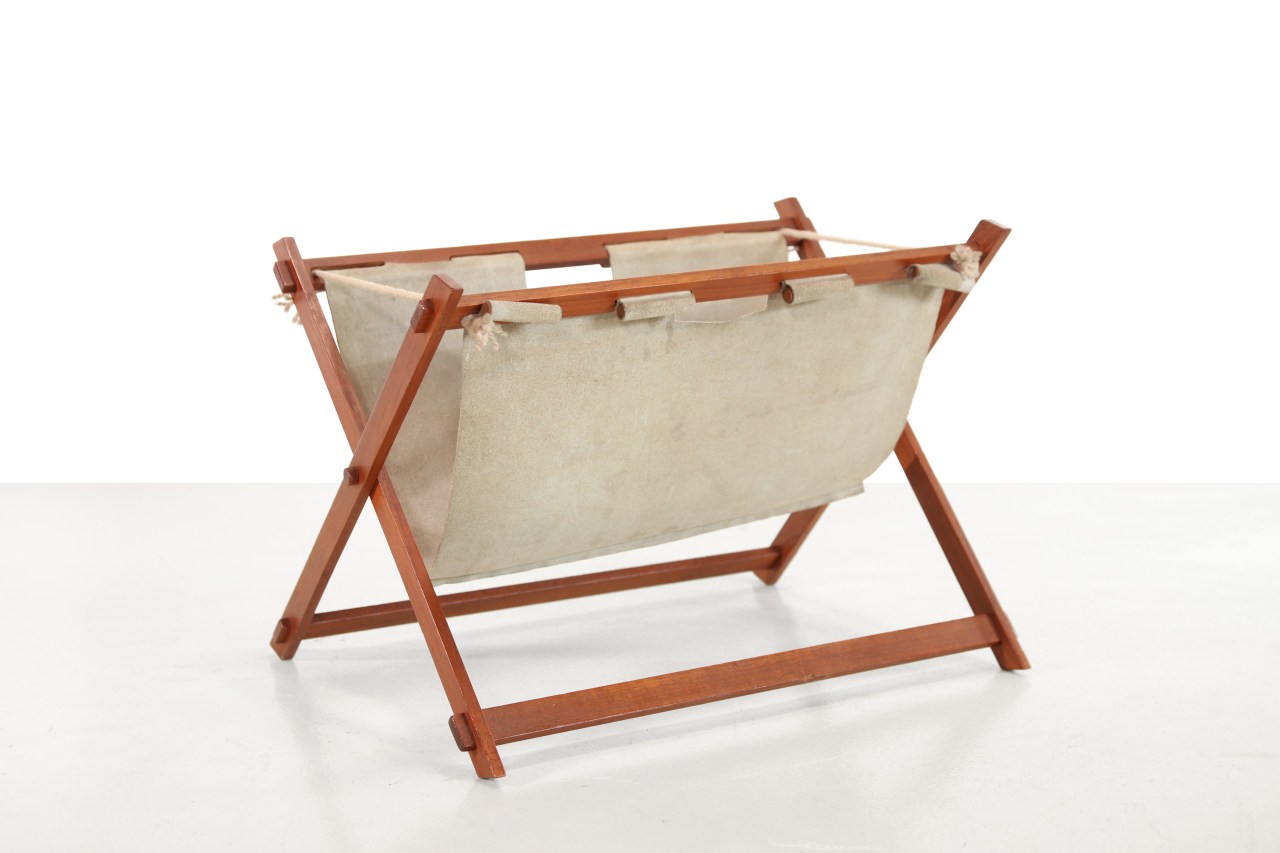 Omschrijving: Leuke lectuurbak uit Denemarken. Het frame is gemaakt van massief teakhout en de lectuurhouder is gemaakt van suède. Super handig om je Woonmagazines netjes op te bergen en toch bij de hand te hebben. De magazine rack is 34 cm hoog, 30 cm diep en 48 cm breed.