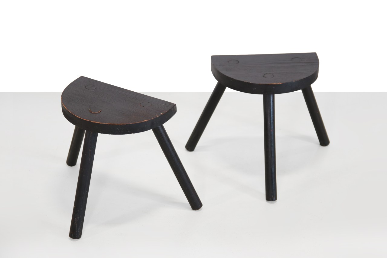 Omschrijving: Twee oude melkkrukjes uit Frankrijk. De krukjes zijn goed te gebruiken als bijzettafeltjes of nachtkastjes en geven erg veel sfeer in een modern interieur. Een mooi detail van ambacht is de manier waarop de pootjes aan het bovenblad zijn vastgemaakt. De krukjes zijn 34,5 cm hoog, 32,5 cm breed en 20 cm diep.