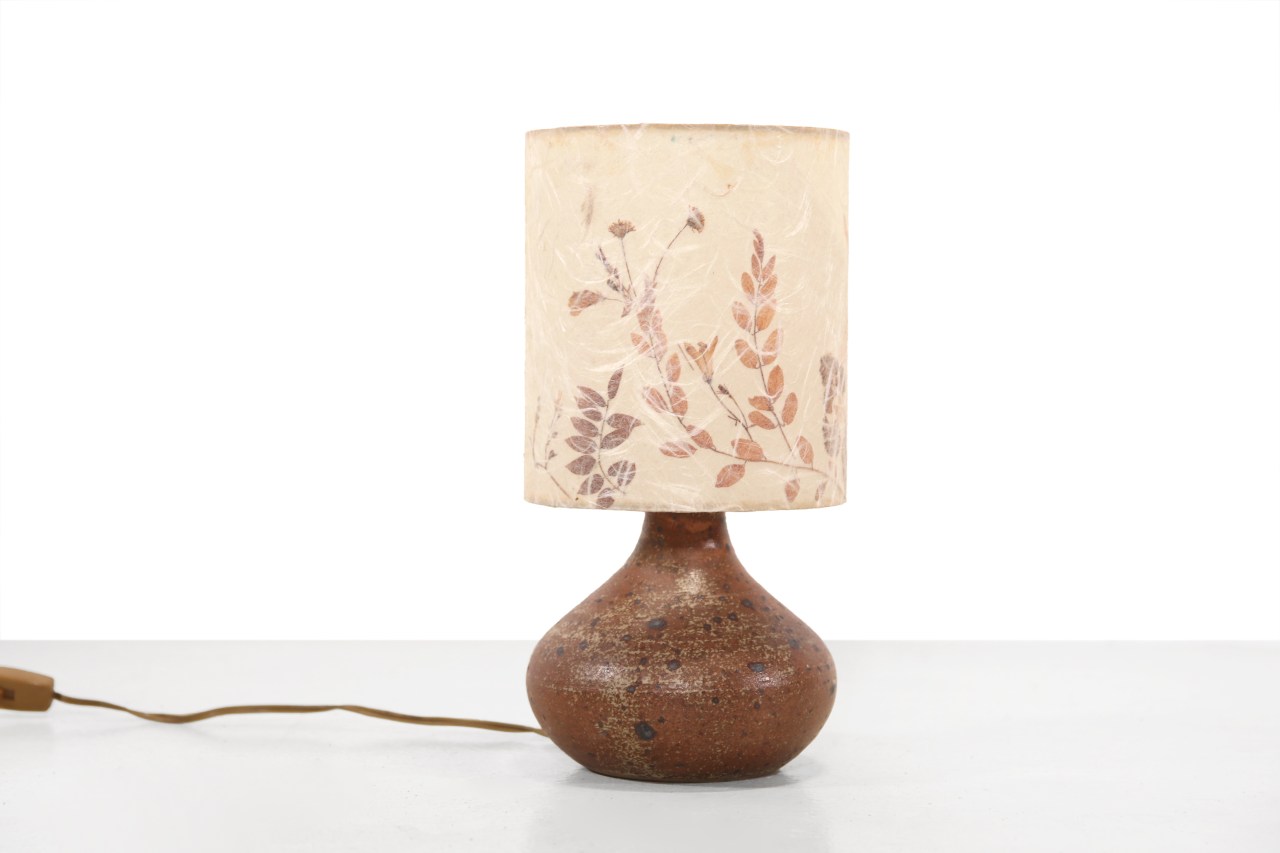 Omschrijving: Dit unieke tafellampje hebben wij gekocht in Frankrijk, en wij werden meteen verliefd op het prachtige glazuur van het lampenvoetje in combinatie met het originele kapje met echte geperste gedroogde bloemen erin verwerkt. Dit lampje geeft niet alleen licht maar ook zoveel persoonlijkheid en warmte. Dit komt vooral door de natuurlijke herfstachtige kleuren. De lamp is 30 cm hoog en heeft een diameter van 15 cm. De lamp heeft een bajonetfitting en een goudkleurig snoer met schakelaar.