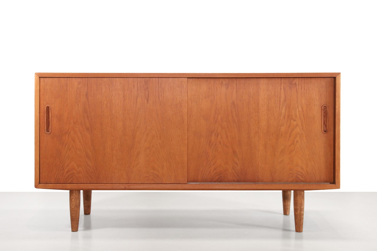 Omschrijving: Simpel en mooi Eiken houten dressoir van Hundevad en Co, Denemarken ontworpen door Carlo Jensen. Je zit dit soort modellen vaker in Teak en Palissander, maar in Eiken is het vrij bijzonder.