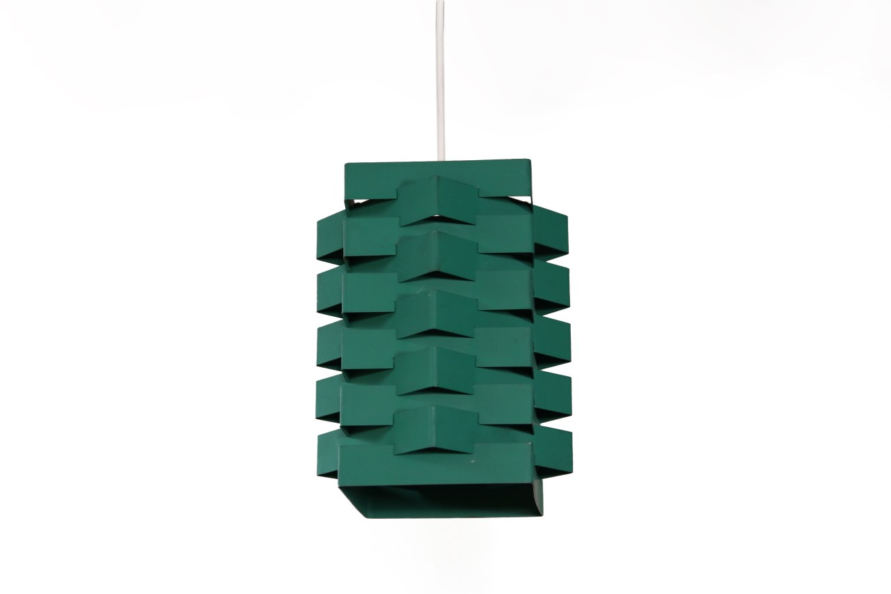 Omschrijving: Groene stalen hanglamp ontworpen door Niels Esmann en Hans Jensen voor Nordsik Solar in de jaren 60. Het is een bijzonder exemplaar die je niet veel tegen komt en welke echt een statement maakt in je interieur. Al is het niet door de vorm dan is het wel door de kleur. Deze groene lamp 25 cm hoog en 22 cm in diameter 22 cm. Het snoer is ruim 250 cm lang.