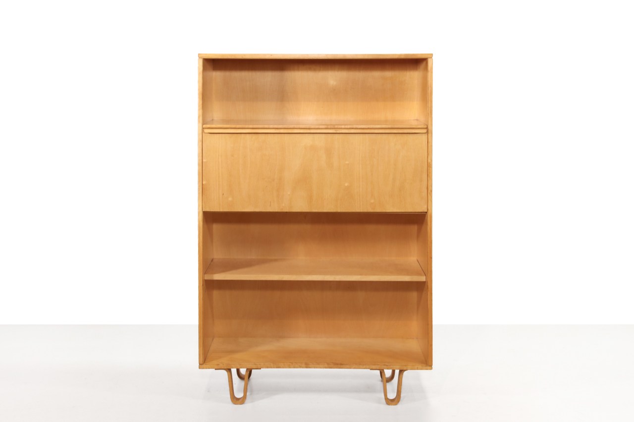 Omschrijving: Zeer mooie secretaire van Cees Braakman uit de bekende Berkenserie van Pastoe. De gebogen berkenhouten poten zijn kenmerkend voor deze serie. Deze prachtige kast kan gebruikt worden om in op te bergen, maar door de klep met het handige opbergvak is deze kast ook zeer goed te gebruiken als bureautje. Aan de nieuwe werkplek die de klep heeft gecreëerd, kan namelijk gewerkt worden met een laptop. Zeer handig voor mensen die klein behuisd zijn. De kast is: 134 cm hoog, 88 cm breed en 30cm diep