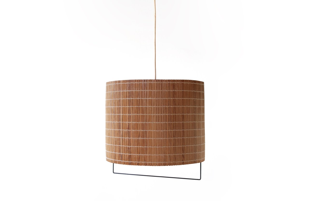 Omschrijving: Zeer mooie Scandinavische hanglamp van handgeweven houten lamellen op een slank zwart metalen frame. De binnenkant van de lamp is voorzien van stof. Het ontwerp doet ons erg denken aan de lampen ontworpen door Paavo Tynell. De lamp heeft een diameter van 32 en is zonder het metaal 25 cm hoog en inclusief het metaal 30 cm hoog.