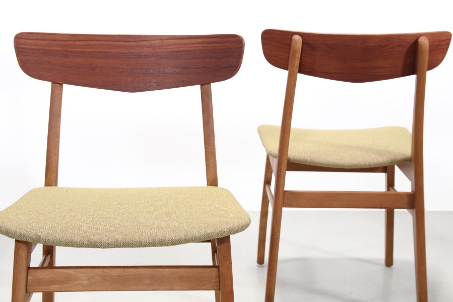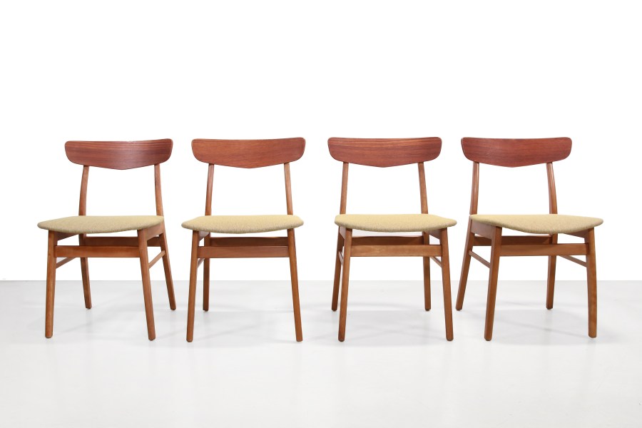 Omschrijving: Mooie set Farstrup eetkamerstoelen uit Denemarken. Deze luchtig vormgegeven stoelen zijn gemaakt van massief beukenhout en hebben een teak plywood rugleuning. De zittingen zijn gestoffeerd in een slijtvaste meubelstof met kleurnaam Pistache. We hebben 5 stoelen beschikbaar die te koop zijn als set van 5 of als set van 4 en 1 losse stoel. Tijdloze set stoelen, geschikt voor elke interieurstijl. De stoelen zijn 78 cm hoog, 45 cm breed en 47 cm diep. De zithoogte is 45 cm. Wij vragen € 275,- per stoel.