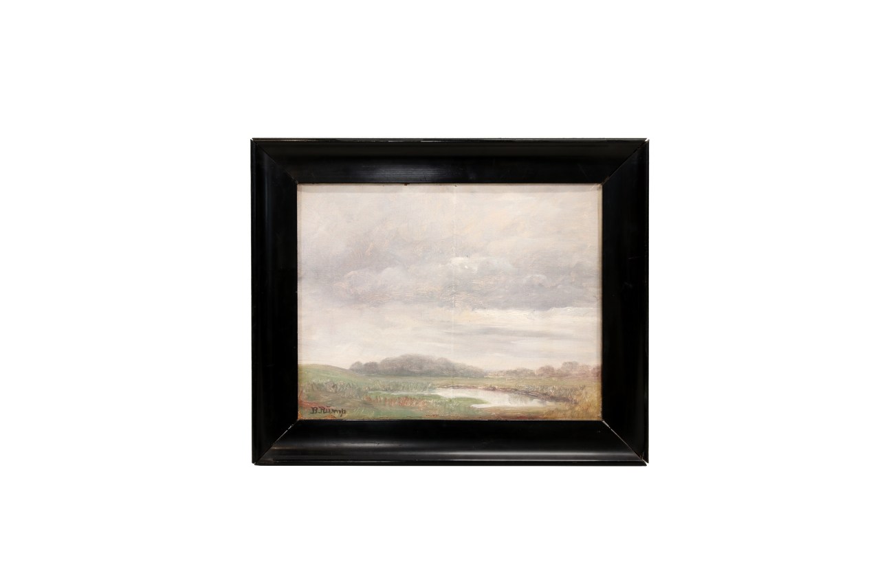 Omschrijving: Zeer mooi Deens olieverfschilderij op canvas, vermoedelijk uit het begin van de vorige eeuw. Het schilderij laat een prachtig Deens landschap zien met een sprekende lucht en een klein meertje. Het werk is ingelijst in een zwart gepolitoerde houten lijst. Het schilderij is ondertekend door de kunstenaar B Rump. Afmetingen: 30 cm hoog, 35,5 cm breed en 4 cm diep.