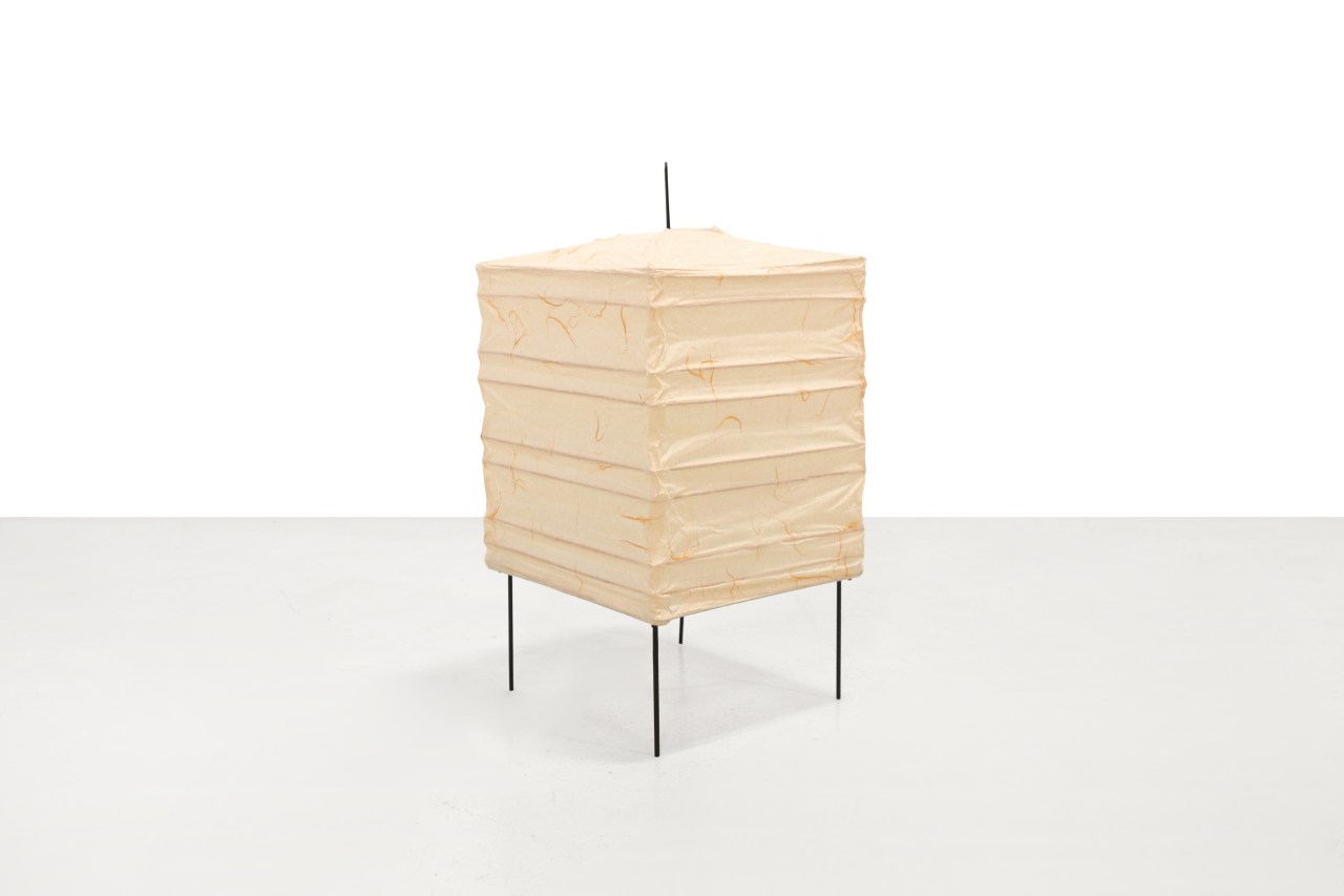 Omschrijving: Bijzondere tafellamp in de stijl van Isamu Noguchi. De vergelijking wordt snel getrokken met deze ontwerper door het gebruik van een zorgvuldig gemaakte papieren kap van prachtig dun Japans geschept papier waarin verschillende kleuren papierpulp zijn gebruikt om een gemêleerd effect te creëren. Hoewel dit soort lampen vaak slecht gekopieerd zijn komt dit model echt uit de jaren 60 en is echt een mooi voorbeeld van een zeer goede kopie met een ongebruikelijke toevoeging van het gemêleerde papier.