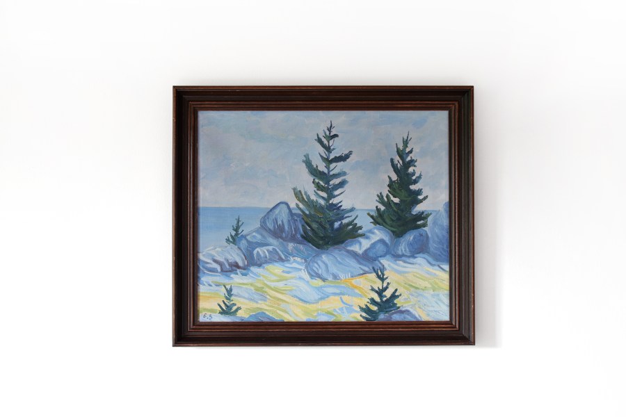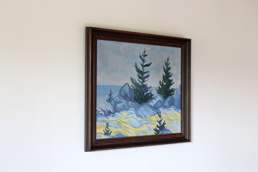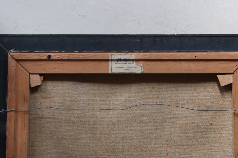 Omschrijving: Mooi figuratief post-impressionistisch olieverfschilderij in de Deens modernistische traditie. Het werk doet sterk denken aan het werk van Aage Strand en de Bornholmse-school. Ingelijst door een galerie in Horsens. De afmeting is 59,5 cm x 53 cm.