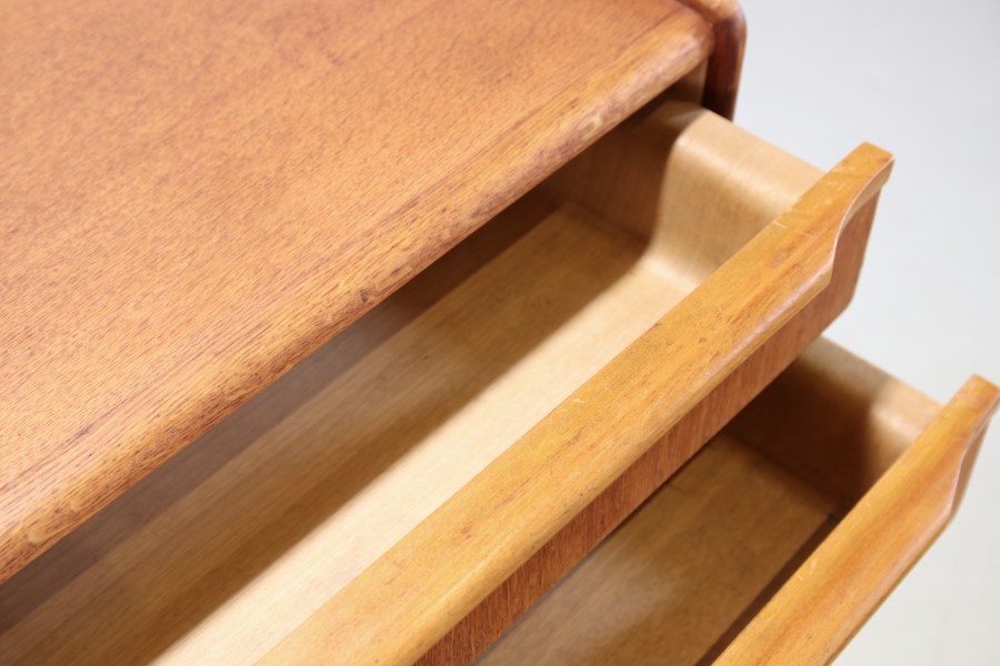 Omschrijving: Prachtig Pastoe dressoir ontworpen door Cees Braakman in 1952. Cees Braakman ontwierp dit dressoir in de Eiken serie en heeft als modelnaam DE02. Een serie meubels die de overgang moesten zijn van de zware eiken vooroorlogse meubels naar de nieuwe naoorlogse modern tijd, helemaal in lijn met de ‘goed wonen’ filosofie. Hij haalde zijn inspiratie uit de Amerikaanse ontwerpen. Met name het gebruik van plywood van de anti-dust lades was zijn tijd ver vooruit in Europa. Het minimale ontwerp met de knipoog naar het verleden is een prachtig tijdsbeeld. De kast is 190cm breed, 48,5cm diep en 86,5cm hoog.