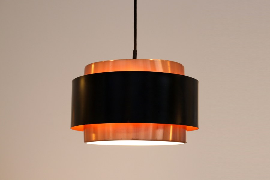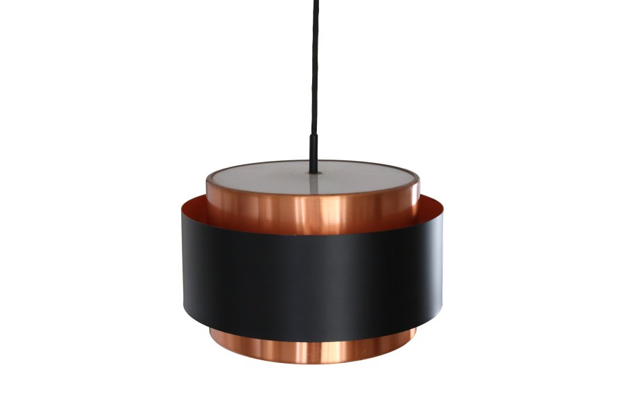 Omschrijving: Een klassieker van Jo Hammerborg, de Saturn. Een lamp gemaakt van massief koper, een zwart gelakte aluminum ring en twee perspex diffusers. Geweldige Deense design lamp met prachtig diffuus licht. De lamp is 20 cm hoog en heeft een diameter van 30 cm.