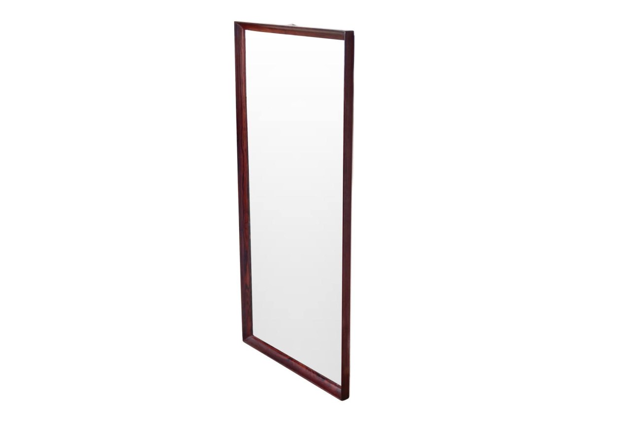 Omschrijving: Erg mooie Palissander houten spiegel uit Denemarken. Deze spiegel is zeer geschikt als passpiegel voor in de slaapkamer of de gang. Deze spiegel is gemaakt van massief Rio palissander hout met een prachtige houttekening. Deze spiegel is 84 cm hoog en 42 cm breed.