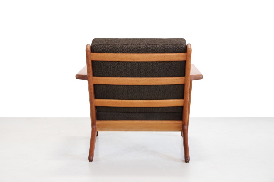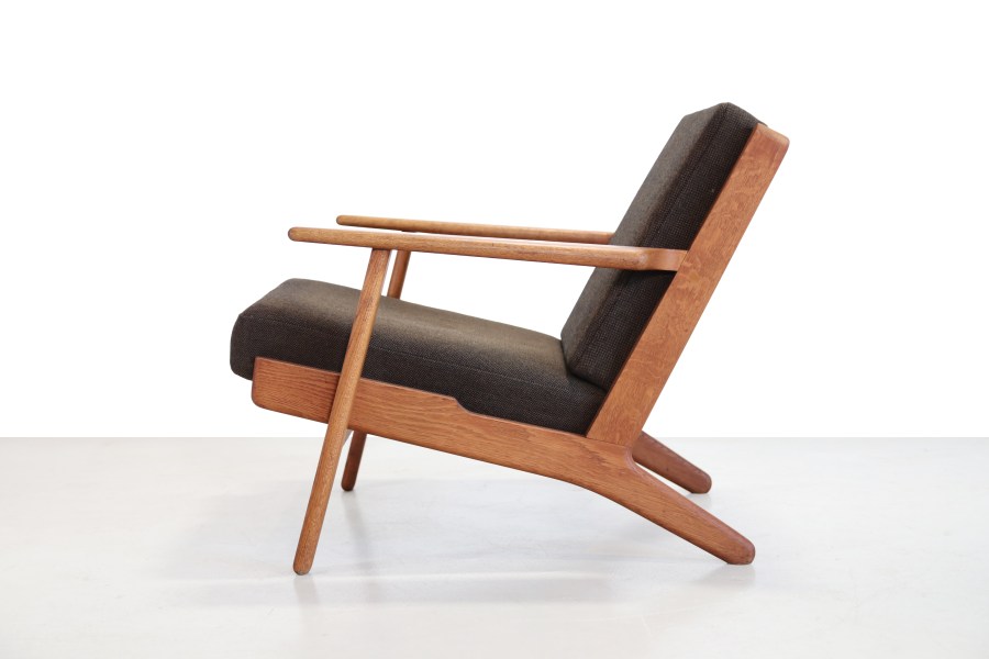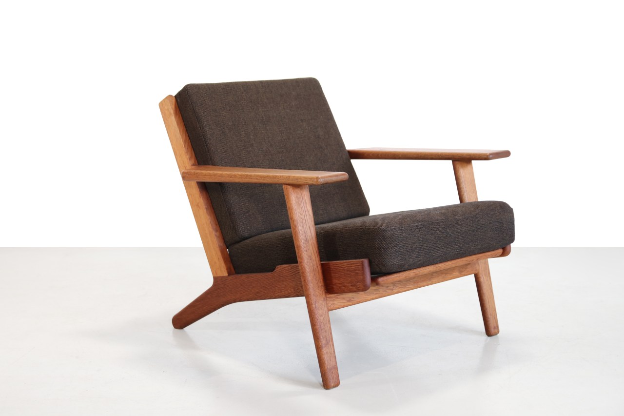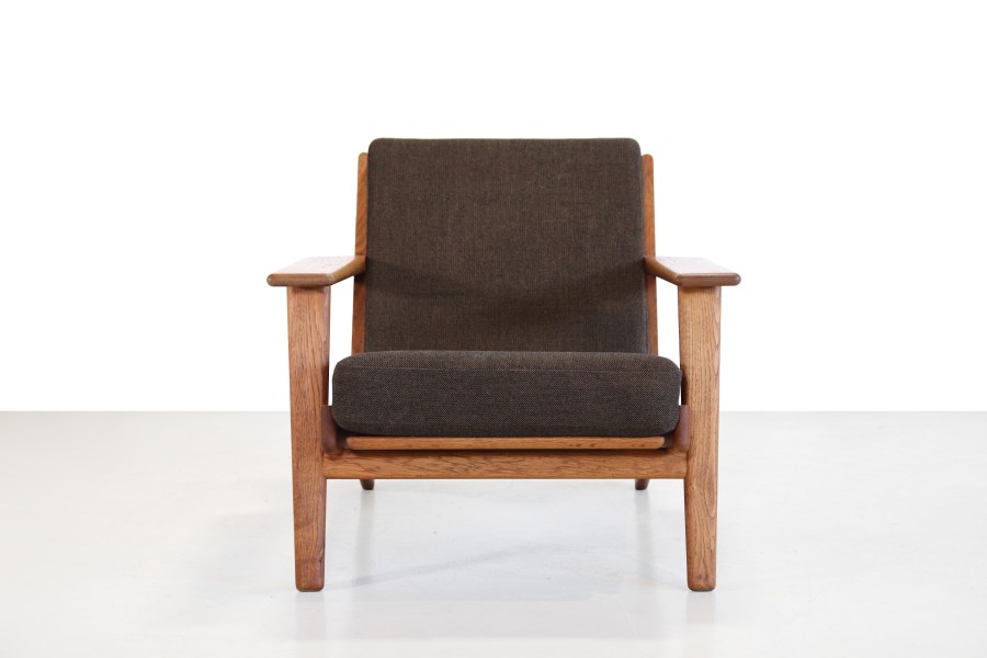 Omschrijving: Prachtige klassieker van Hans J. Wegner voor Getama uit Denemarken. Dit model, GE290, is een fauteuil gemaakt van massief eikenhout. Geweldig iconisch ontwerp van misschien wel de bekendste ontwerper uit Denemarken. Naast het ontwerp en de hoge kwaliteit zit de fauteuil ook nog eens heerlijk. De stoel heeft de origine kussen met de originele bruine wollen stof van Kvadrat. De stoel is 70 cm hoog, 85 cm diep en 75cm breed. De zithoogte is 43 cm.