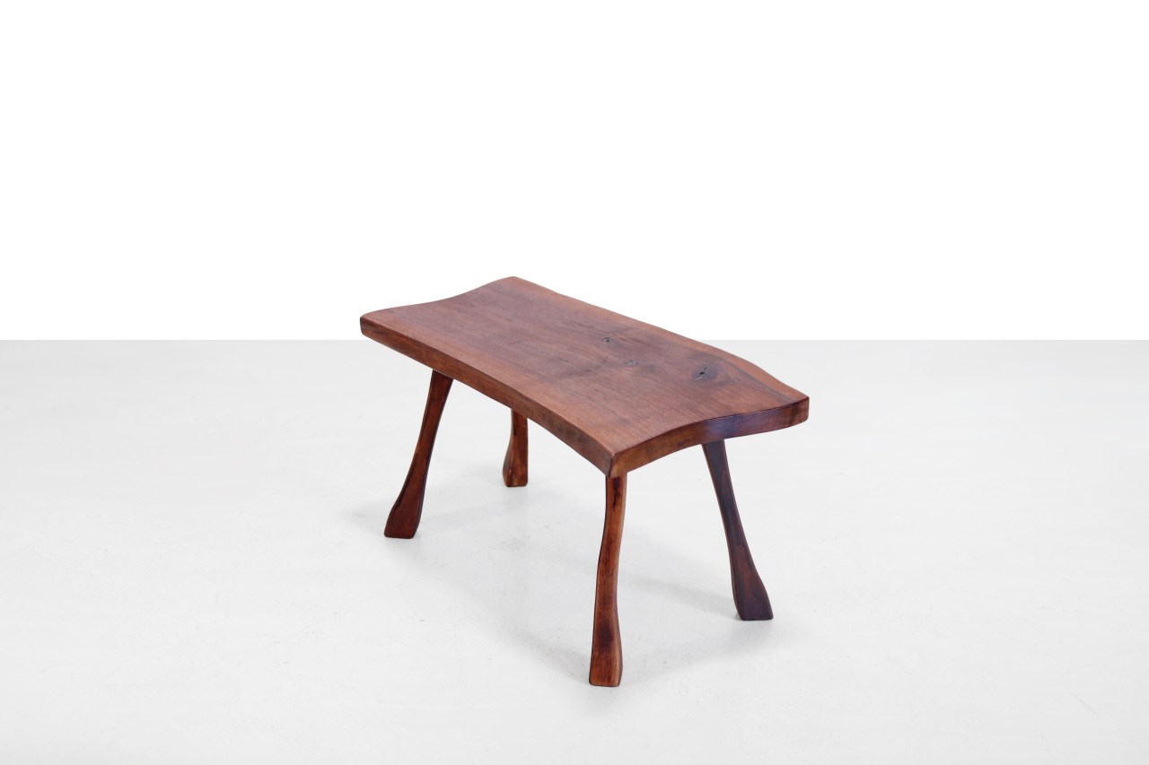 Omschrijving: Vintage brutalist boomstam bijzettafel uit de mid century design periode. Het tafeltje, gemaakt van een stukje boomstam waarbij de rand van de boom nog zichtbaar is, op mooie organisch vormgegeven pootjes is afkomstig uit Frankrijk en is met zijn natuurlijke maar ook speelse vormgeving een mooie toevoeging aan elk interieur.