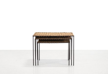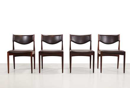 Set van vier Johannes Andersen eetkamerstoelen in Palissander met bruin leer